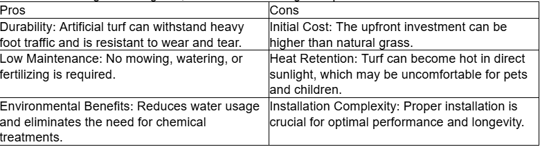 When considering artificial grass, it's essential to weigh the pros and cons. Here’s a breakdown:
